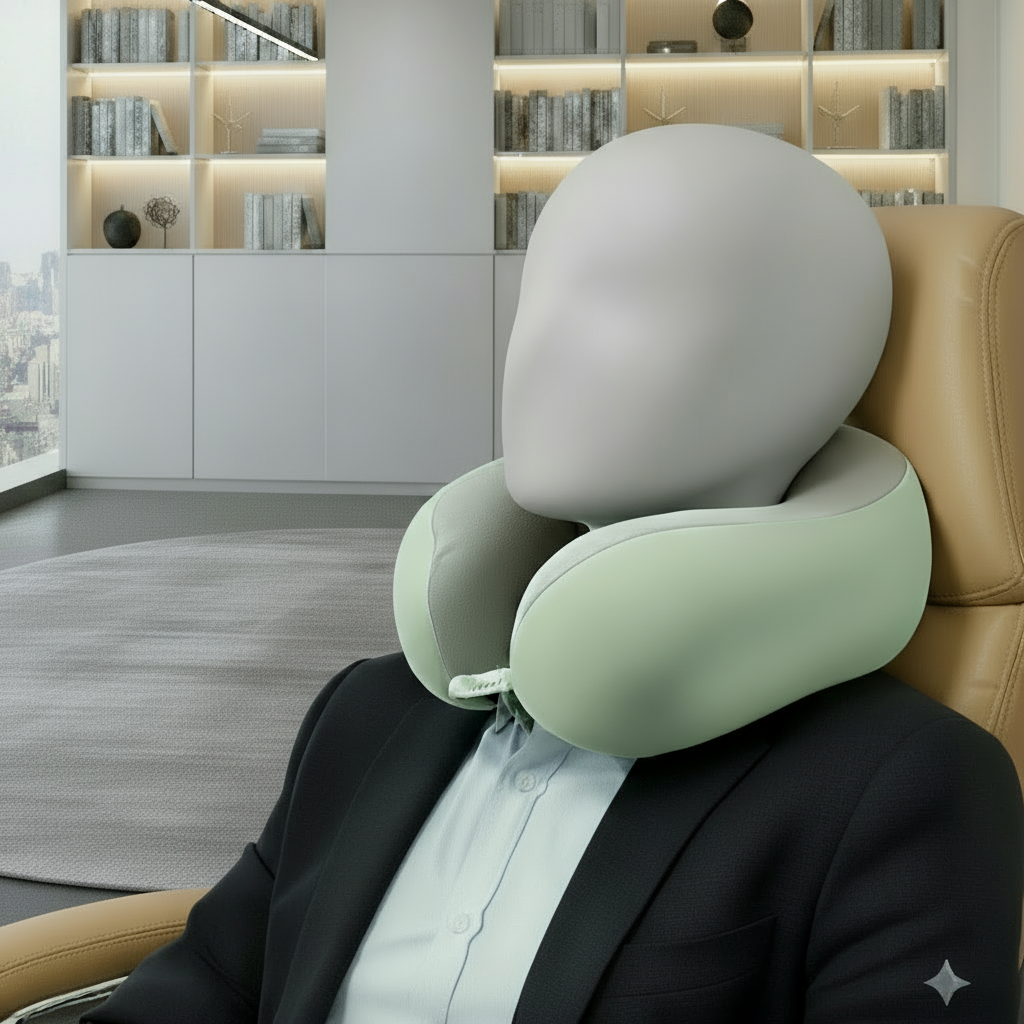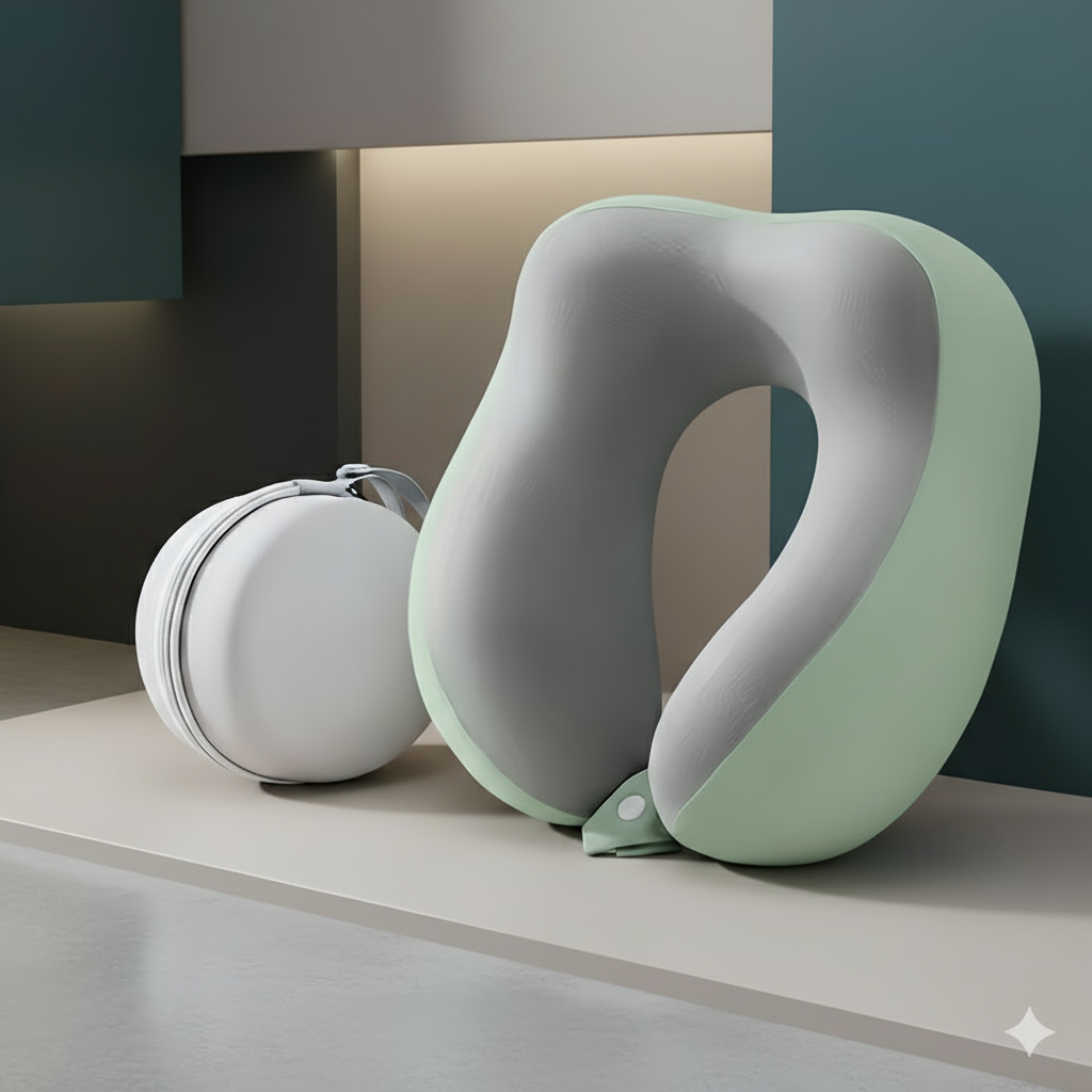 Ergonomic memory foam neck pillow with washable cover and storage bag. Perfect for travel, office, and home comfort.